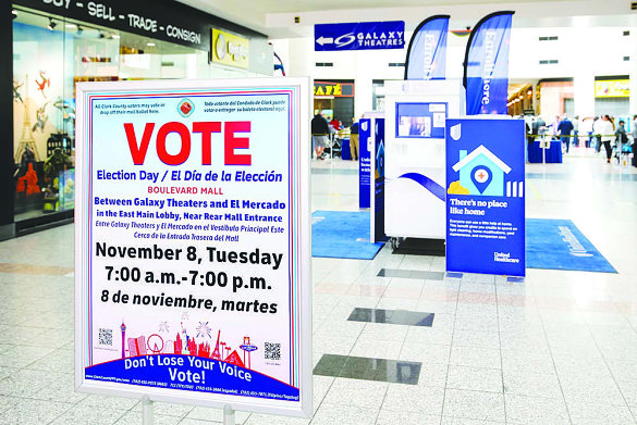 A sign is displayed at a polling site on midterm Election Day, Nov. 8, 2022, at the Boulevard Mall
