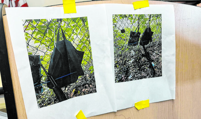 Photos of an AK-style rifle, backpack and GoPro camera on a fence outside Trump International Golf Club, in West Palm Beach, on Sunday.