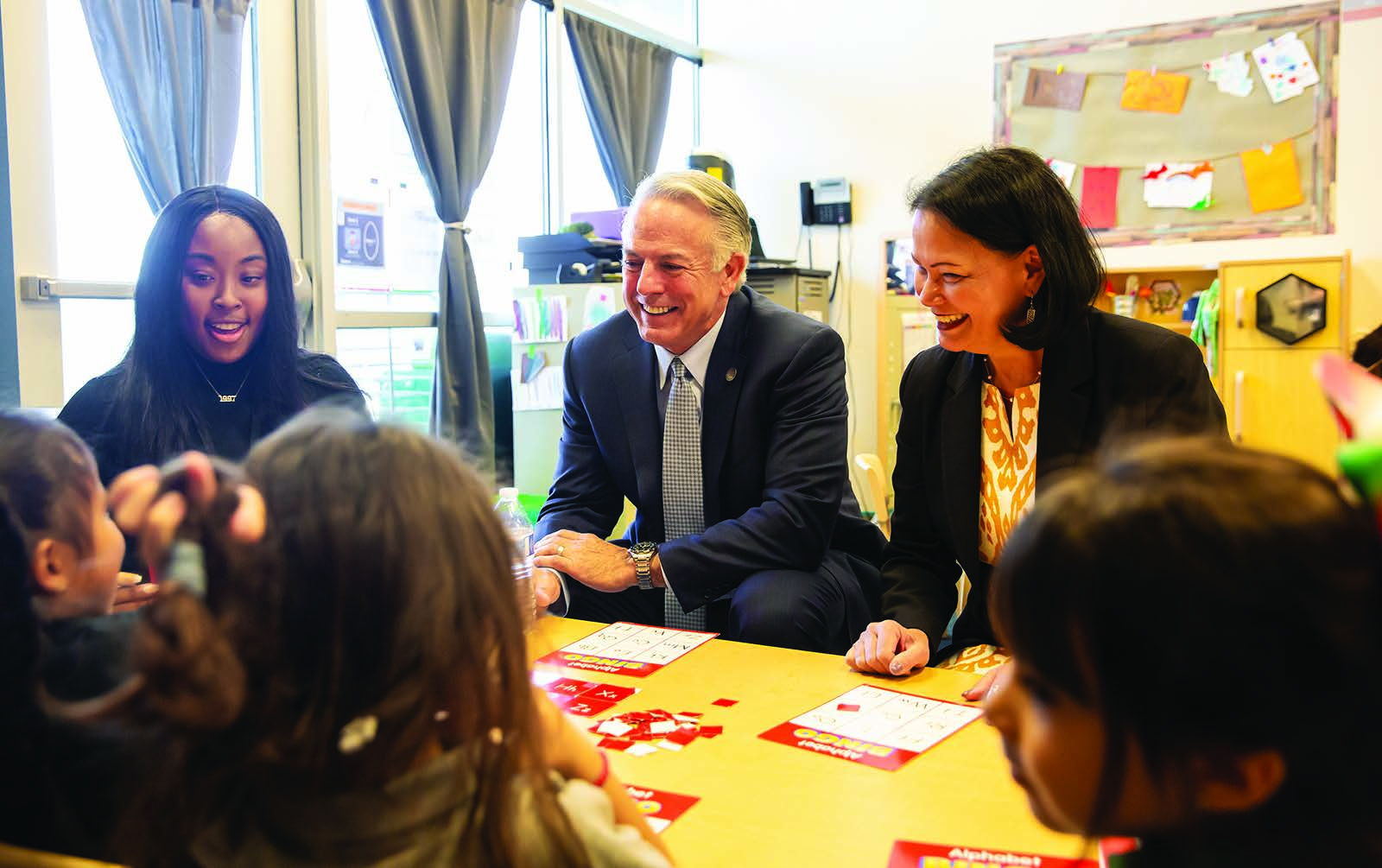 Nevada Gov. Joe Lombardo, center, and Jhone Ebert, right, then Nevada’s superintendent of public instruction and now the superintendent of the Clark County School District, visit a pre-K classroom at Mater Academy Mountain Vista in 2023. Senate Bill 460, which Lombardo signed into law at the end of the 2025 legislative session, provides for the expansion of eligibility and funding for prekindergarten and early-childhood educational opportunities in Nevada.